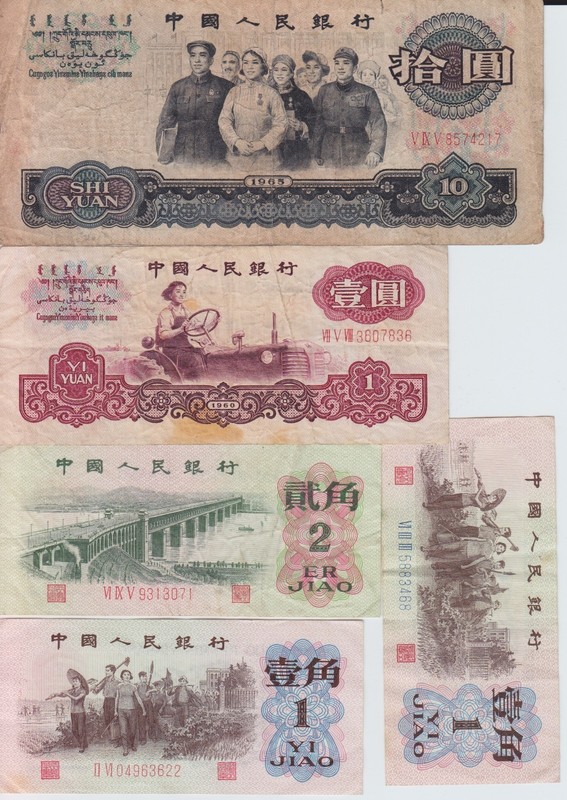 Collecters Item: China Banknotes Lot 1 5 Jiao 1 10 Yuan 3Rd Series 1960 1962 1965