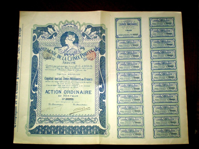 Collecters Item: Compagnie De La Guinée Portugaise,Brussels 1899 ,Art Nouveau, Share Certificate.