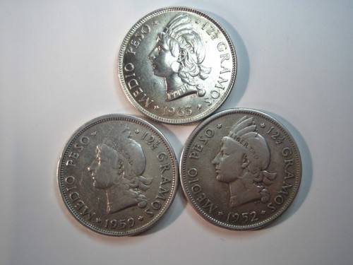 Collecters Item: Dominican Republic .900 Silver Medio Peso Half Dollar Coins, 1952, 1959, 1963