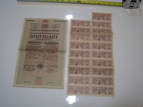 Collecters Item: German Government City Of Stuttgart 50000 M. Bond 1923