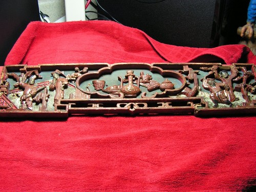 Antique Chinese Wall Plaque - Hand Carved Wood 18 X 4