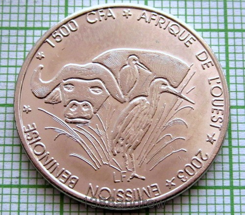 Collecters Item: Benin 2003 1500 Cfa Francs - 1 Africa, Buffalo And Two Birds, Unc