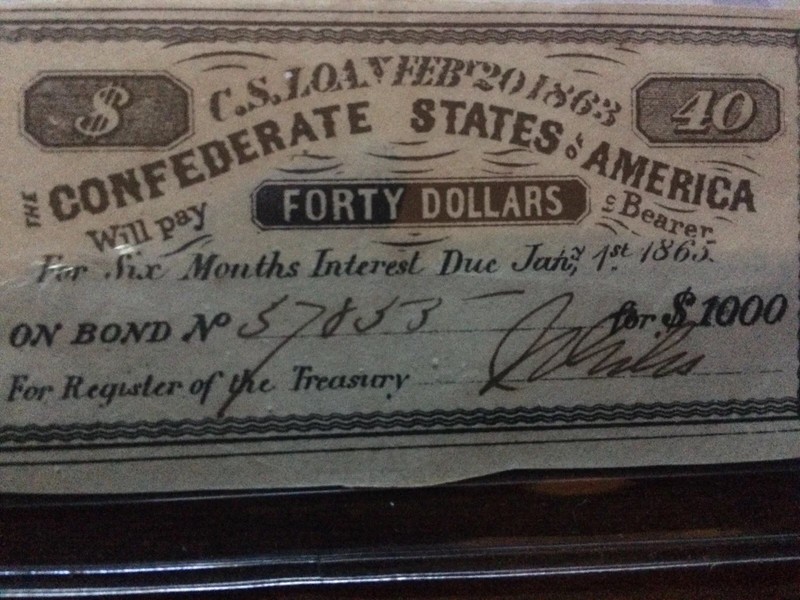 Collecters Item: C.S.A. $1000 Loan Bond Forty Dollar Interest Coupon Scarce
