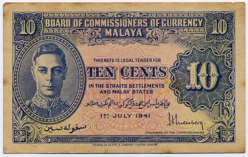 Collecters Item: Malaya 10 Cents 1941 Pick #8