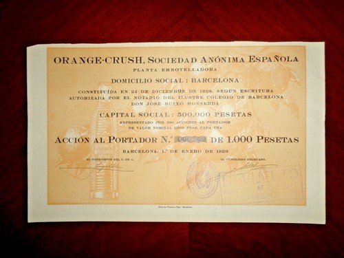 Collecters Item: Orange Crush , Share Certificate Spain1929