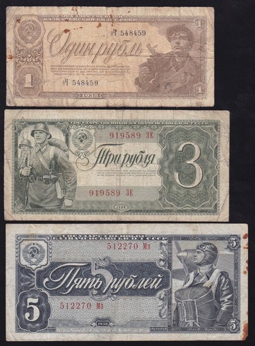 Collecters Item: Russia ------Lot 1, 3 And 5 Roubles 1938 ------ Vg/F -------