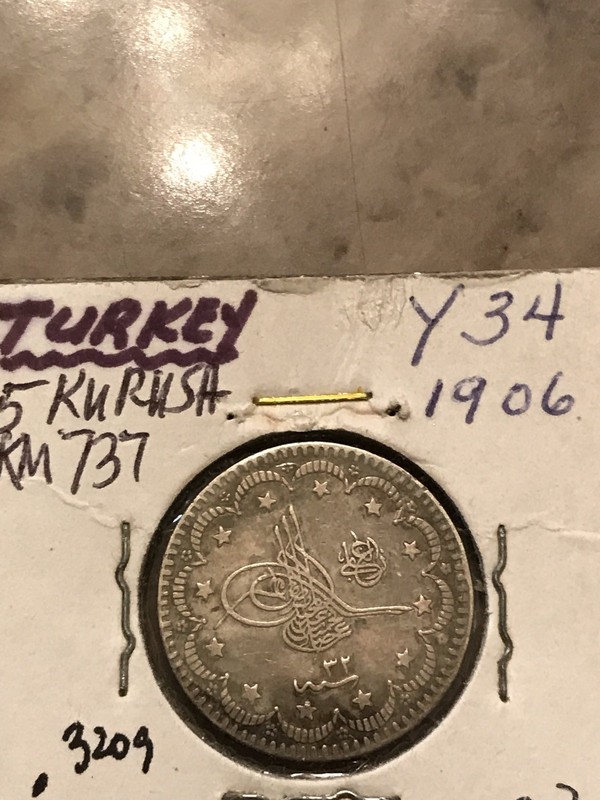 Collecters Item: Turkey Km737 5 Kurush 1906 Yr 32 Silver Coin