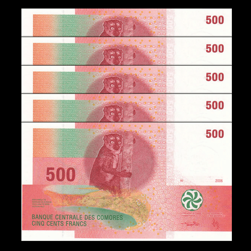 Lot 5 Pcs, Comoros 500 Francs, 2006, P-15, Unc
