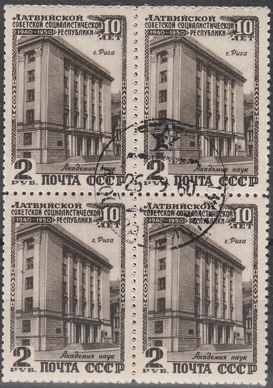 Stamp Russia Ussr Sc 1496 Block Trade Union Building Used
