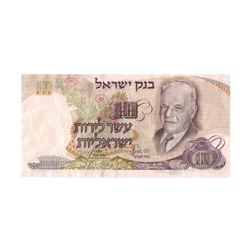Israel Banknote 10 Israeli Pounds 1968 Unc Blue Serial Paper Money Collectors