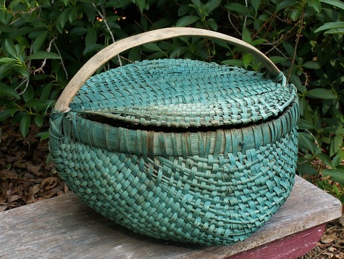 Valuable: 1800S Rare Buttocks Gizzard Basket Double Lid Blue Paint Patina Large Georgia