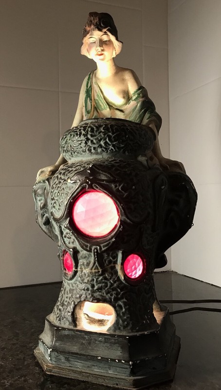 1926 Rare Deco Fortune Teller Lamp Incense Burner With Elephant Motif