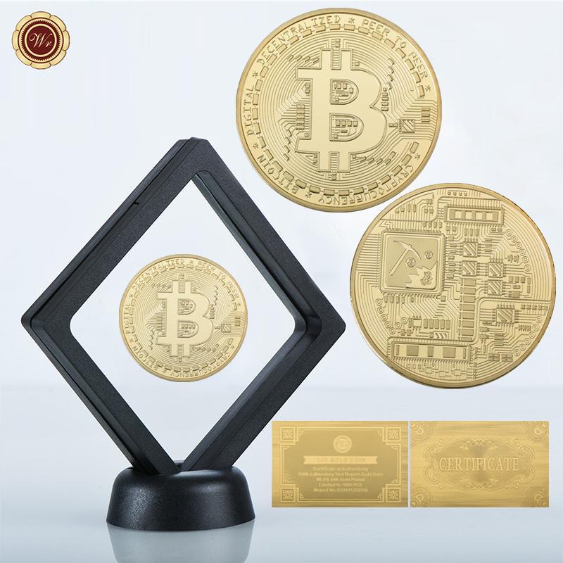 Gold Bitcoin Coin Collectible Coins With Quality Display Stand