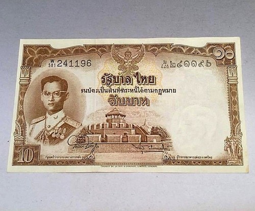 Collecters Item: Thailand Banknote Paper Money 10 Baht 1948 Uncirculated King Rama 9
