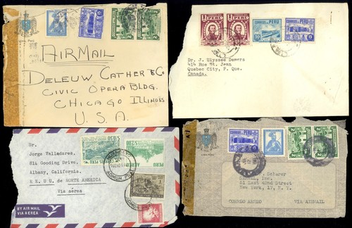 Collecters Item: 4 Peru Stamp Cover Censored 30367 Censor Lima Airmail Huancayo Good Old Lot P61