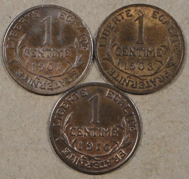 Collecters Item: France 3 One Centime'S 1903,04,+16 Better Grades
