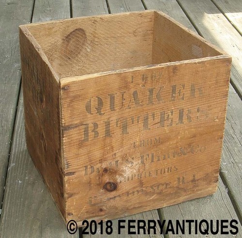 Antique Old Rare Advertising Medical Quaker Flint'S Bitters Bottle Box Crate
