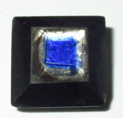 Valuable: Rare Antique Blue Flashing Glass Tingue Button W Black Glass & Faceting - 9/16""
