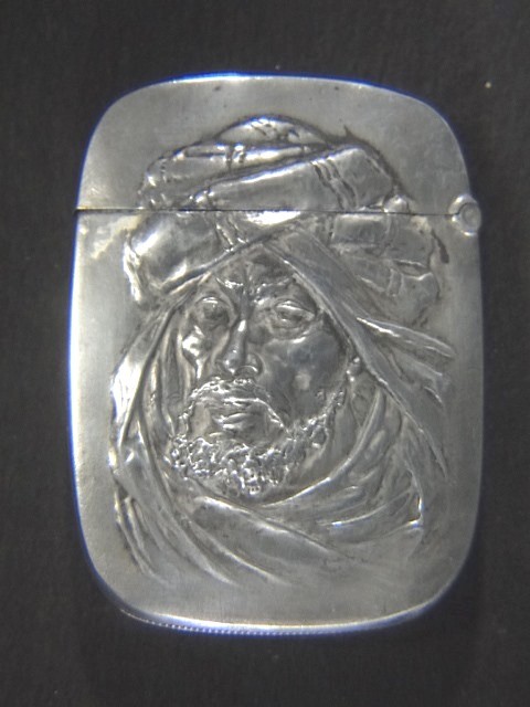 Rare Antique Sterling Silver Match Safe Vesta Case Arab Man In Turban