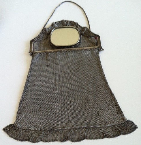 Rare Antique Sterling Silver Fine Mesh Purse W/ Classical Carved Celluloid Scene