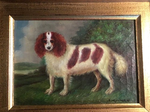 Valuable: Rare Vintage/Antique Oil On Board Painting Of A Dog Cavalier Spaniel Signed