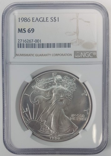 1986 American Silver Eagle Ngc Ms69 $1 Certified Coin