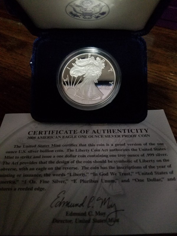 2008 Silver American Eagle Proof Dollar Coin With Box and Coa