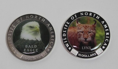 Collecters Item: 2000 Liberia Wildlife Of America Bald Eagle & Lynx - 2 Coins W/ Coa