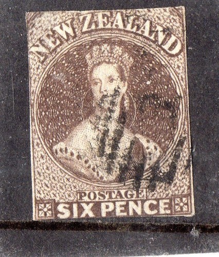 New Zealand Sg85 1862-3 6d Pelure Paper 1 Mgn Av Used Shallow Thin Cat £250