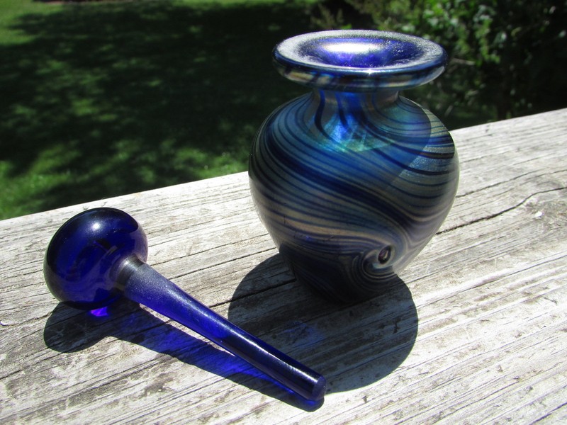 Rare Unusual Art Deco Swirled Iridescent Cobalt Blue Perfume Signed & Dated '31