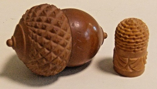 Valuable: Rare Victorian Antique Carved Tagua Nut Thimble Holder and Thimble