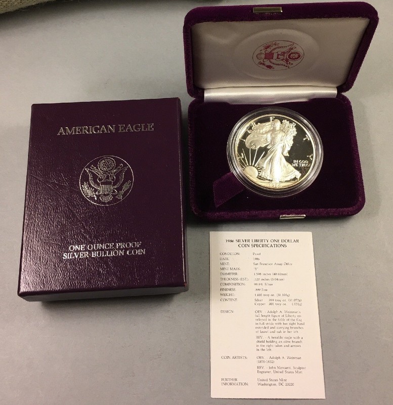 Bullion: 1986 Us Mint American Eagle 1oz Silver Proof Coin With Box & Coa