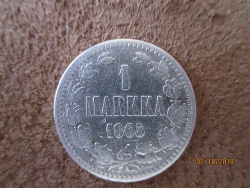 1865 Finland 1 Markka Silver Coin