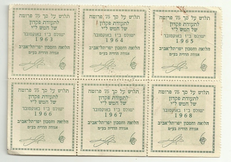 Judaica Israel 6 Old Deposit Coupons Halvaa Vehisachon Yaffo Tel Aviv 1963-68