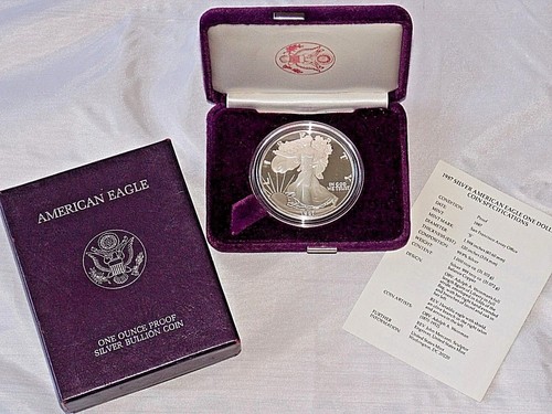 Bullion: 1987 S Silver Eagle Us Mint Proof Coin 1 Ounce Box & Coa