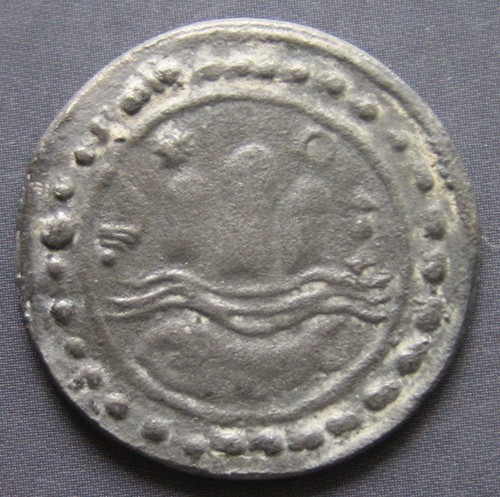 Collecters Item: 18th Circa.--S. E. Asia--Ancient Coin---Mountain/water/fish/conch(shell)--25 Mm.