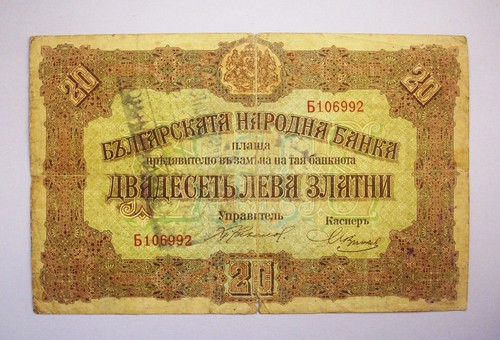 Collecters Item: Bulgaria - 20 Leva Zlato (Gold),nd (1917),pick#23a,avf