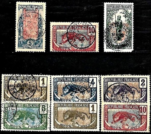 Collecters Item: French Middle Congo, a.e.f.overprints..9 Stamps to 5frs..