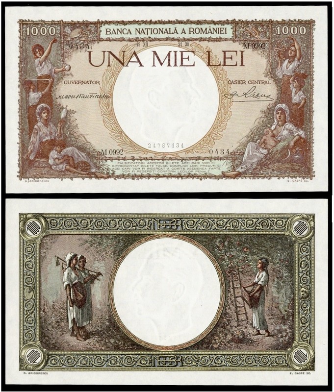 Collecters Item: Romania 1000 Lei 1938 P#46 Banknote Rumänien Unc