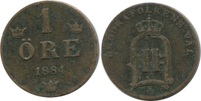 Collecters Item: Sweden 1 Öre 1884 Oscar Ii Km# 750 @ad406.2u
