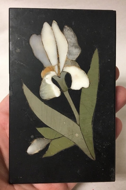 Pietra Dura Rare Antique Large Paperweight Flowers Decor