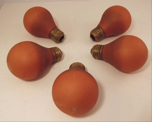Rare! 5 Working Antique Ge Mazda Orange Red Light Bulbs 25 W Watts 120 v