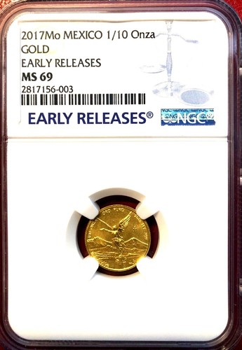 Bullion: 2017 1/10 Oz. Gold Libertad Bu Coin *Treasure Coin of Mexico™* Ngc Ms 69 Er
