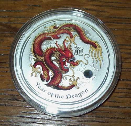 Bullion: Australia 2012 Red & Gold Dragon 1 Troy Oz. Silver Dollar Lunar Coin Colorized