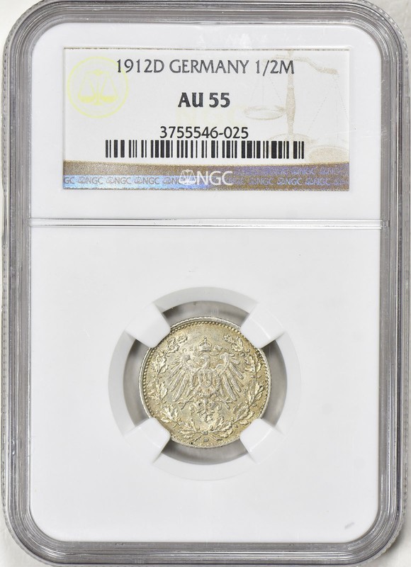 Collecters Item: 1912d Germany Silver Half Mark - Ngc Au55 - Km17 (16-0174)