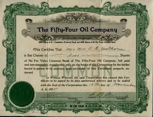 Collecters Item: 1925 Fifty Four Oil Company Colorado E a Pring Stock Certificate Petroleum 54 Co