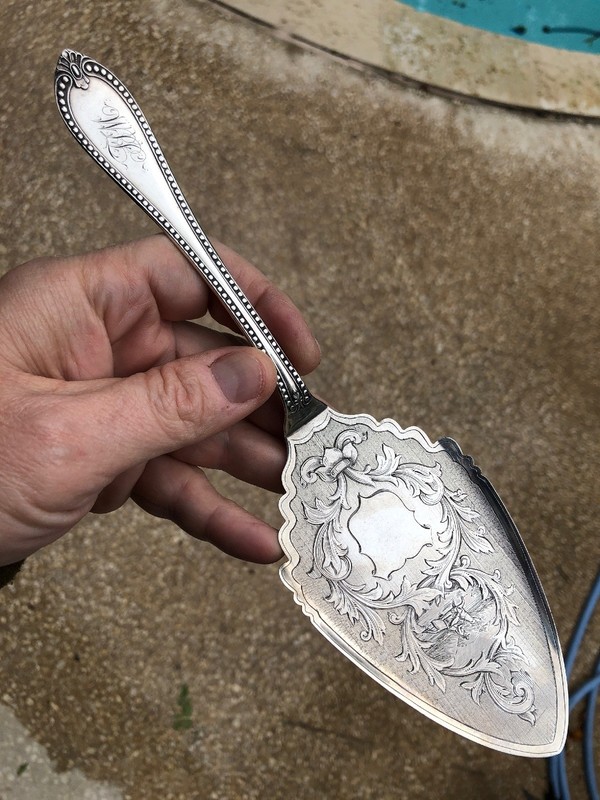 Killer! Rare 1860’s Shreve San Francisco Coin Silver Pastry Server Etched