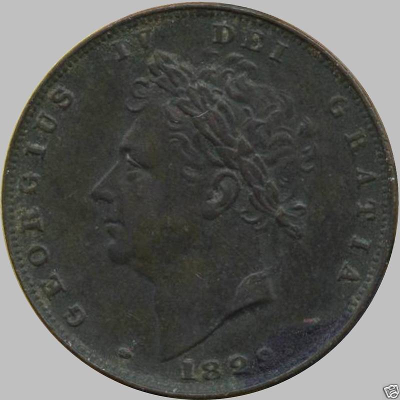 1829 Great Britain 1 Farthing Coin