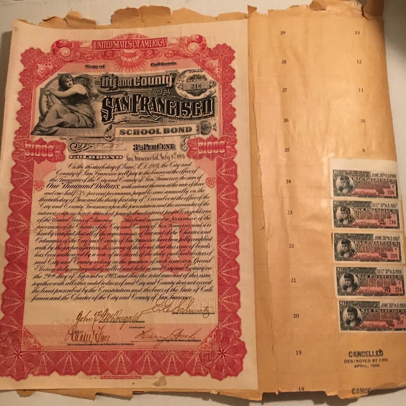 Collecters Item: 1904 San Francisco School Bond Certificate Stamps Signed Mayor Eugene Schmitz