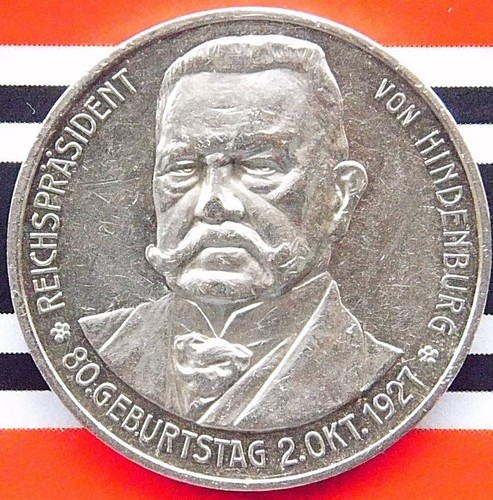 Collecters Item: German Medal 1927 Hindenburg 80th Birthday Anniversary Silver Weimar +Rare Lauer